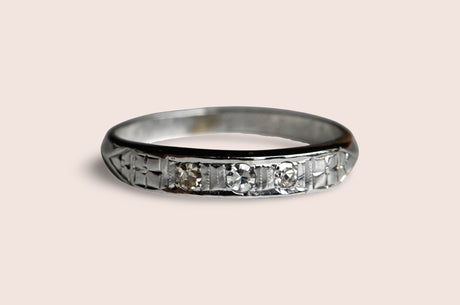 Vintage "12-20-41" Art Moderne 1940s 18K three-stone diamond wedding band