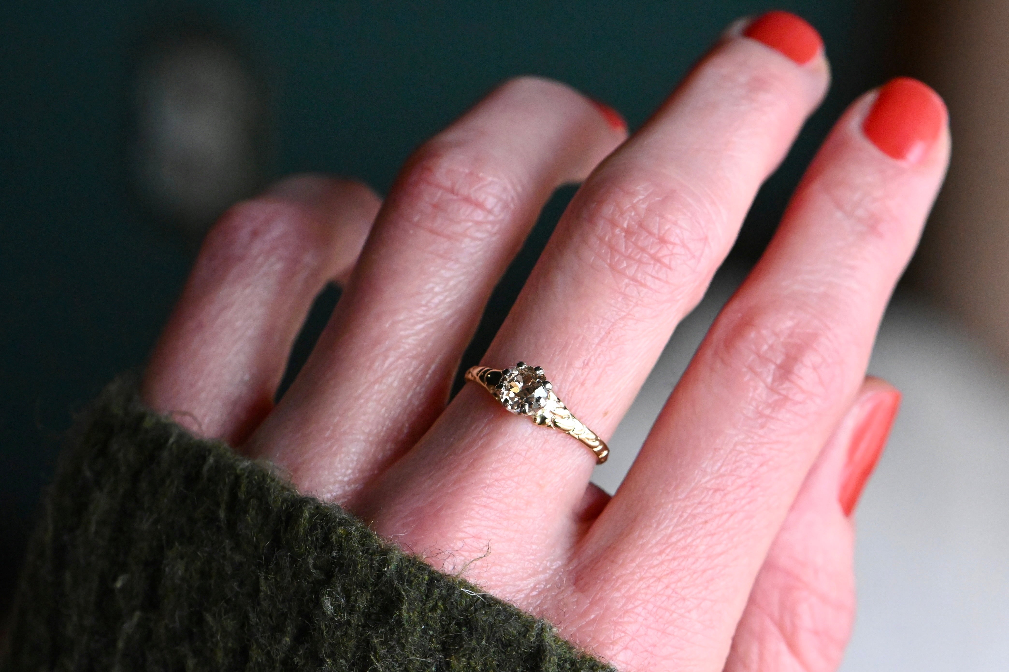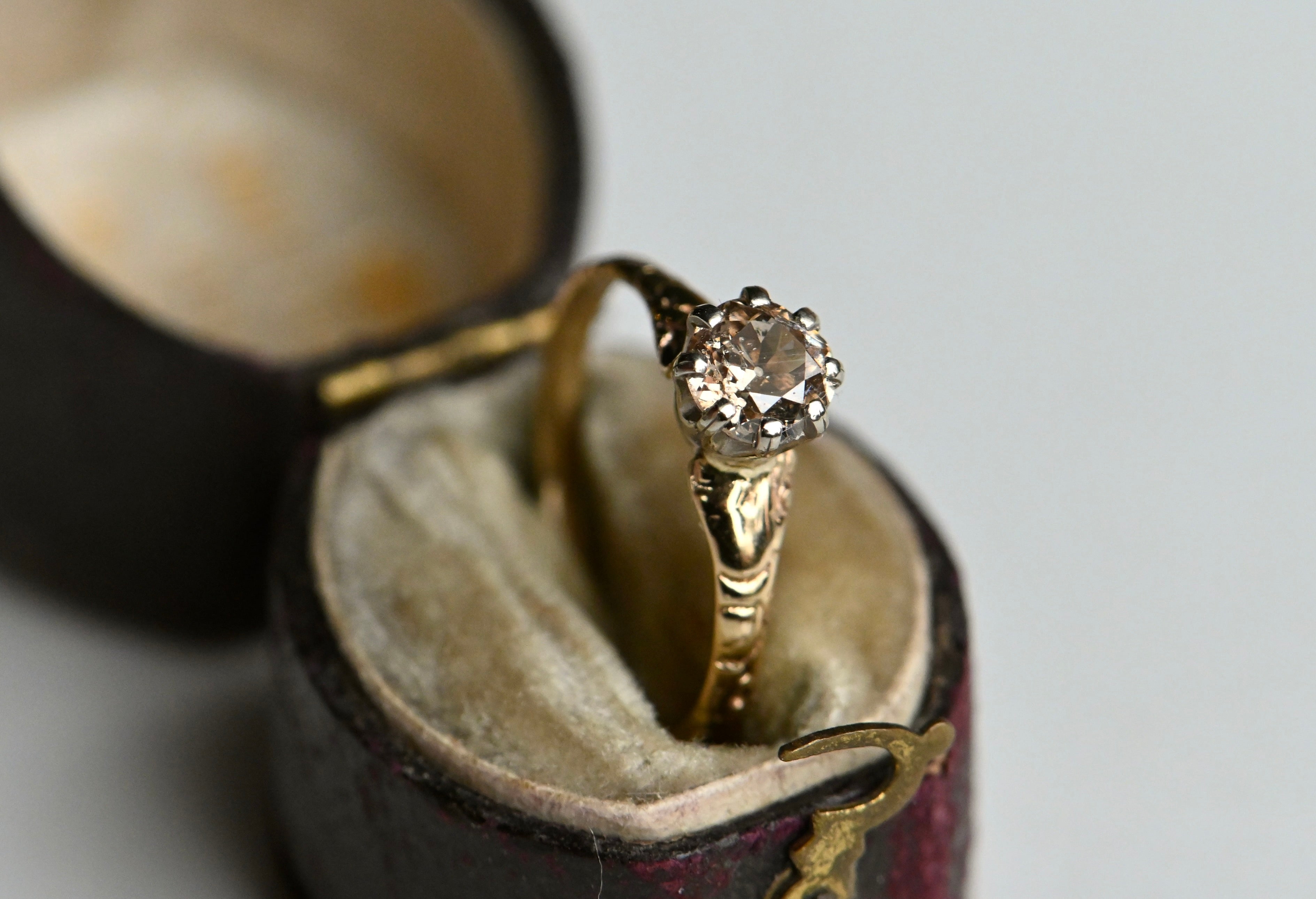 Antique 1920s .50 carat fancy brown Old European Cut diamond engagement ring