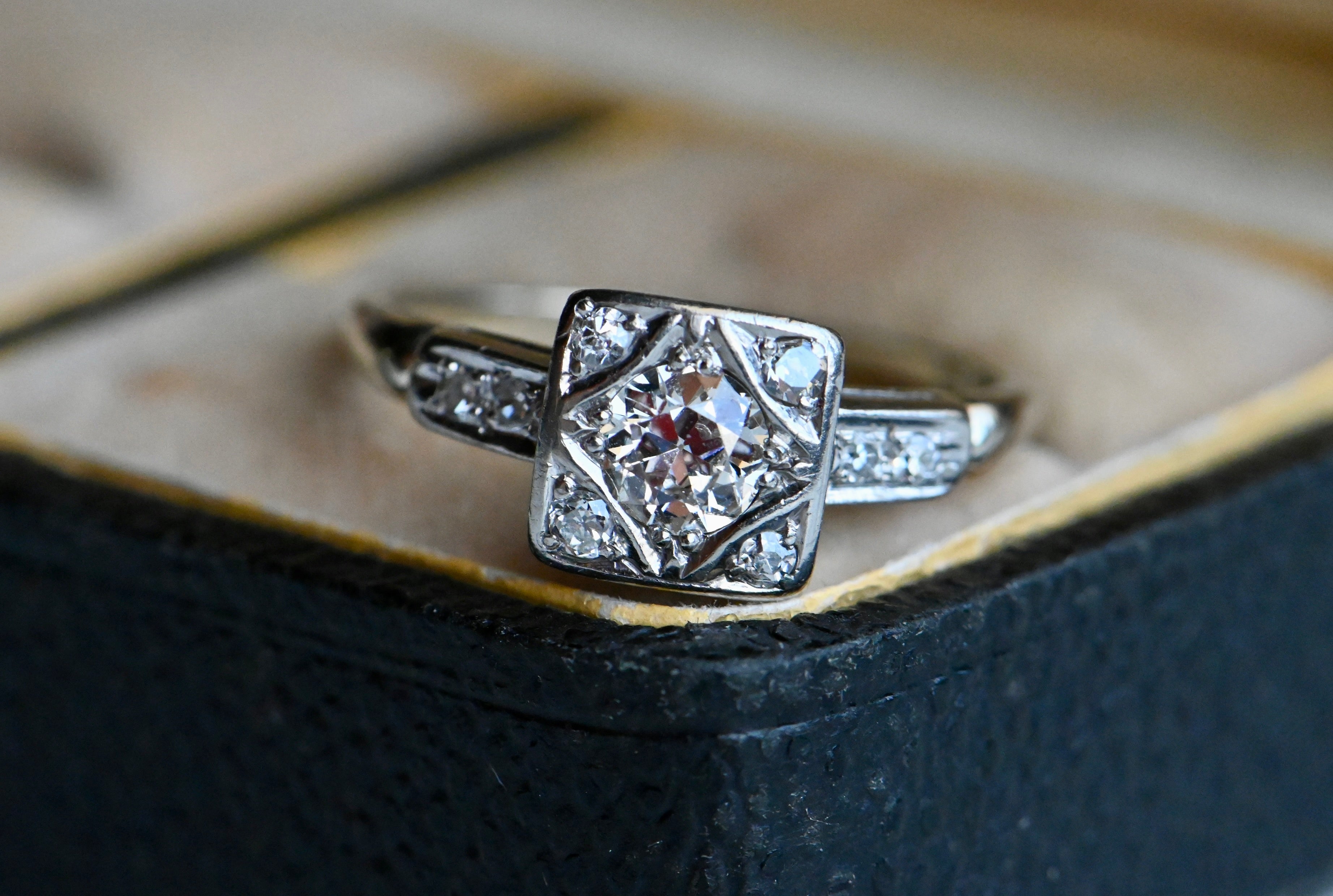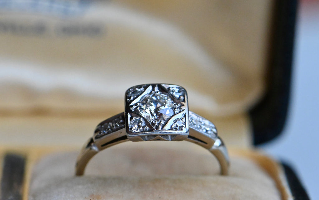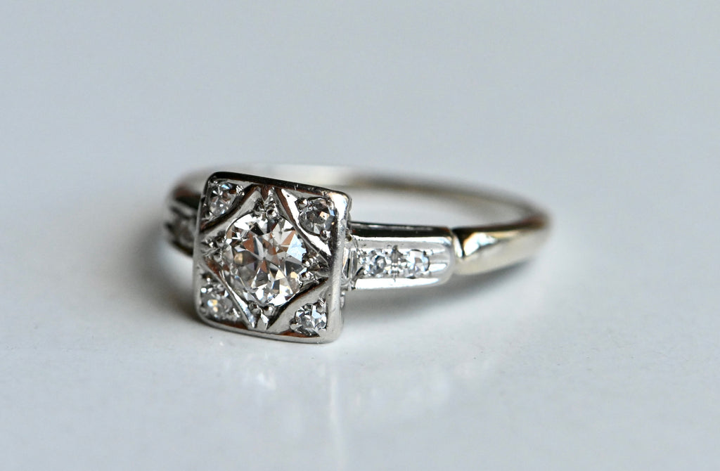 Vintage 1930s Art Deco 18K .35 carat VS2/G Old European Cut solitaire engagement ring