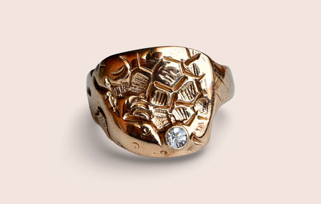 Antique 1920s Art Deco 10K gold salamander signet ring with diamond