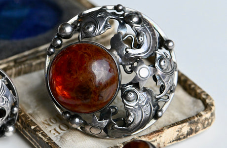 "Skønvirke translates as “Beautiful Work.” It is the name applied to Danish jewelry made in an Arts and Crafts style. This Skønvirke movement in Denmark encompassed the years 1900 to 1925, roughly the period when Arts & Crafts and Art Nouveau were popular in Europe. In harmony with the other European movements, Skønvirke was a reaction to over-industrialization and strove for a return to quality craftwork."