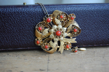 Victorian Rococo Revival coral pendant brooch ✶ SALE ✶