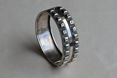 Antique 1880s Victorian sterling wide cuff bracelet with abstract motif