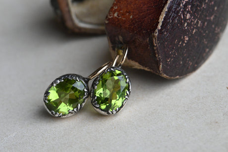 Jean Jean is thrilled to offer a bespoke collection of Georgian-style gemstone earrings, designed for us by fellow Georgian Era jewelry enthusiast Beth Bernstein. This listing is for a pair of crisp, citrus-grove-green peridot earrings.