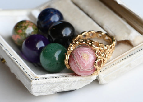 Vintage 1970s Gilbert Albert 18K ring with interchangeable marbles