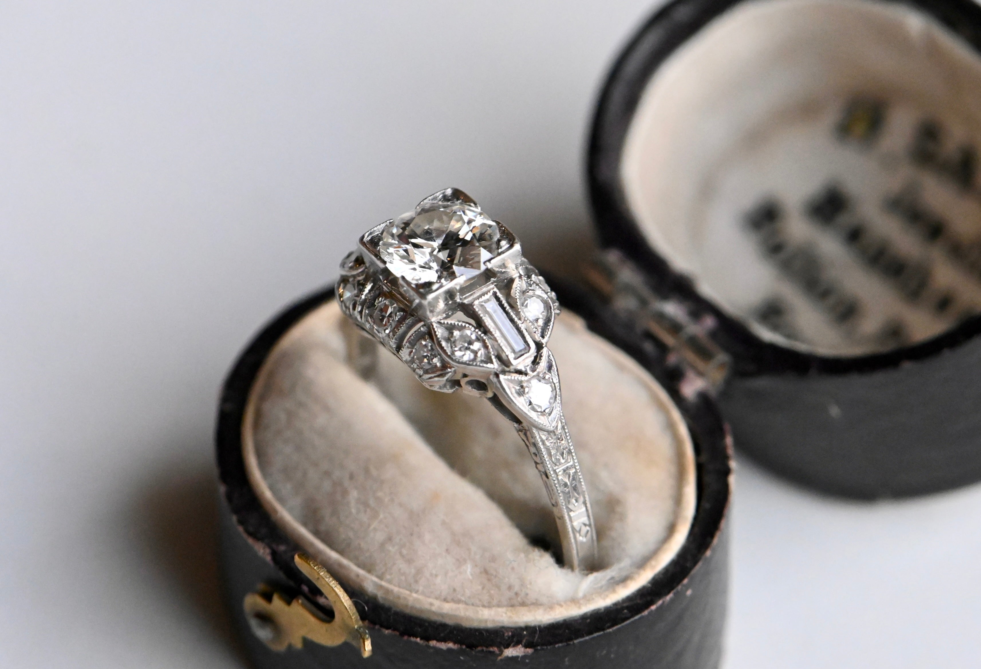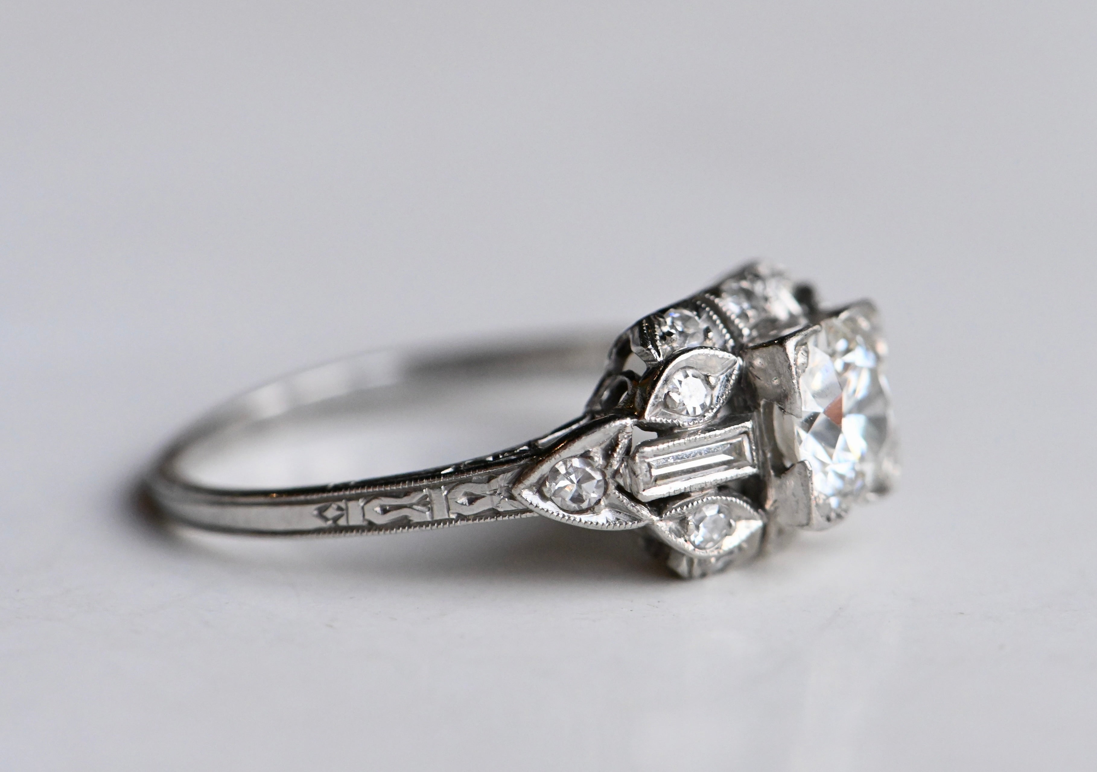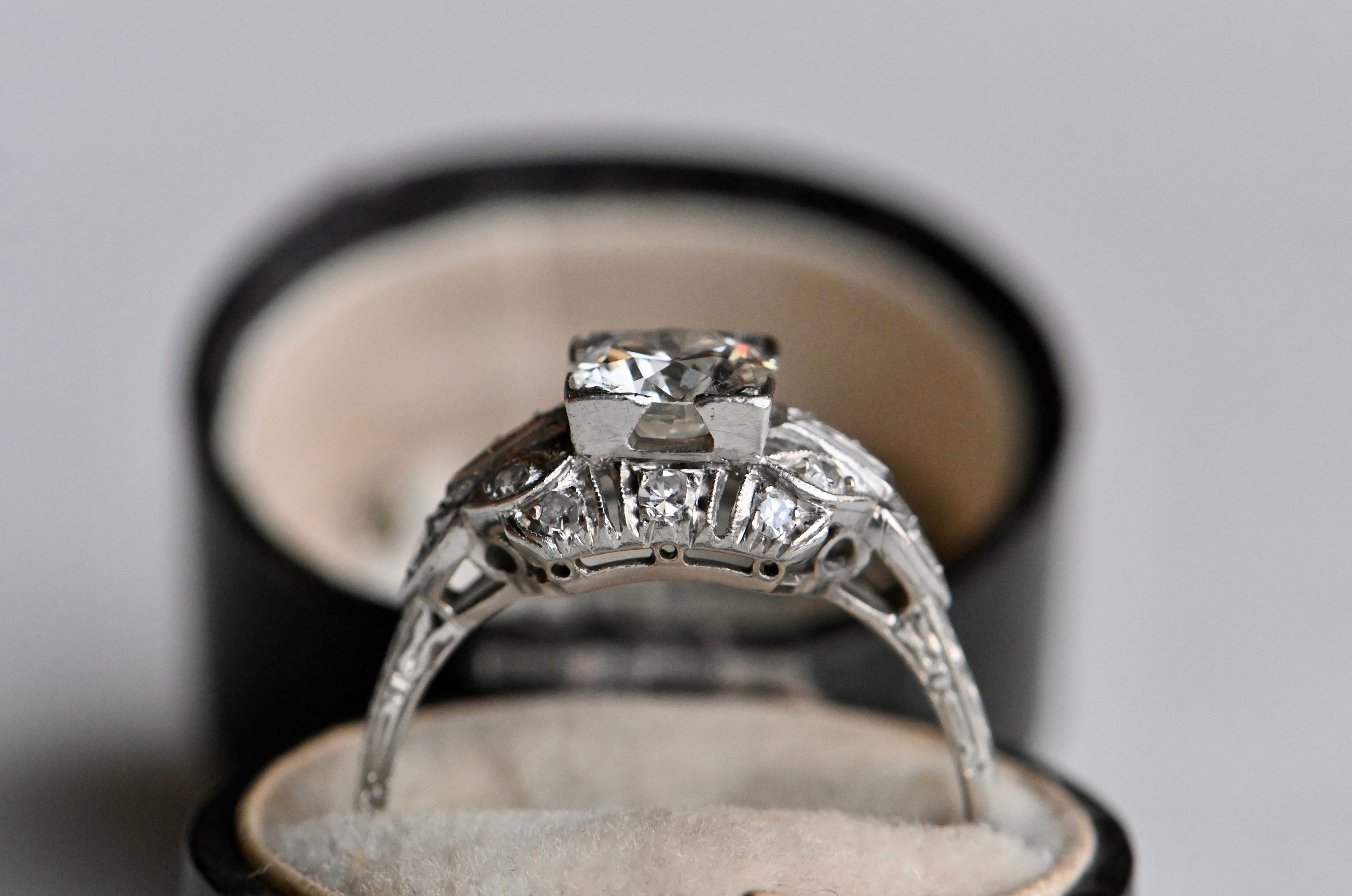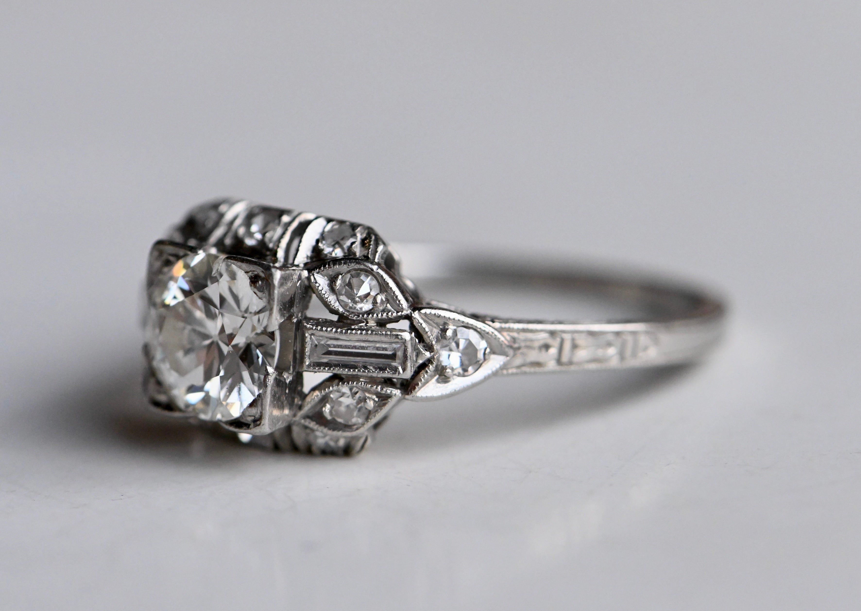 Antique 1920s Art Deco 1.00 carat SI1/I Old European Cut diamond engagement ring
