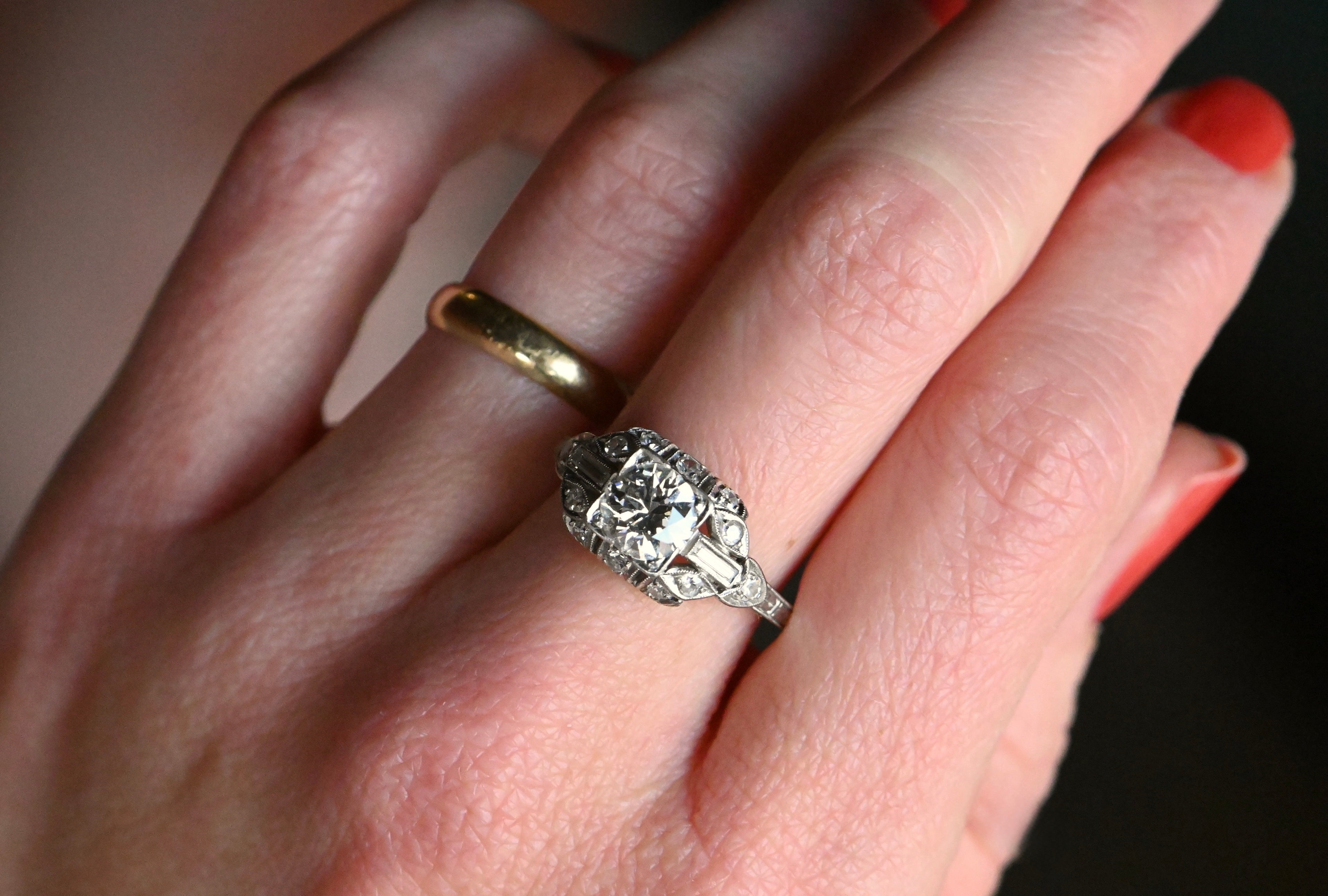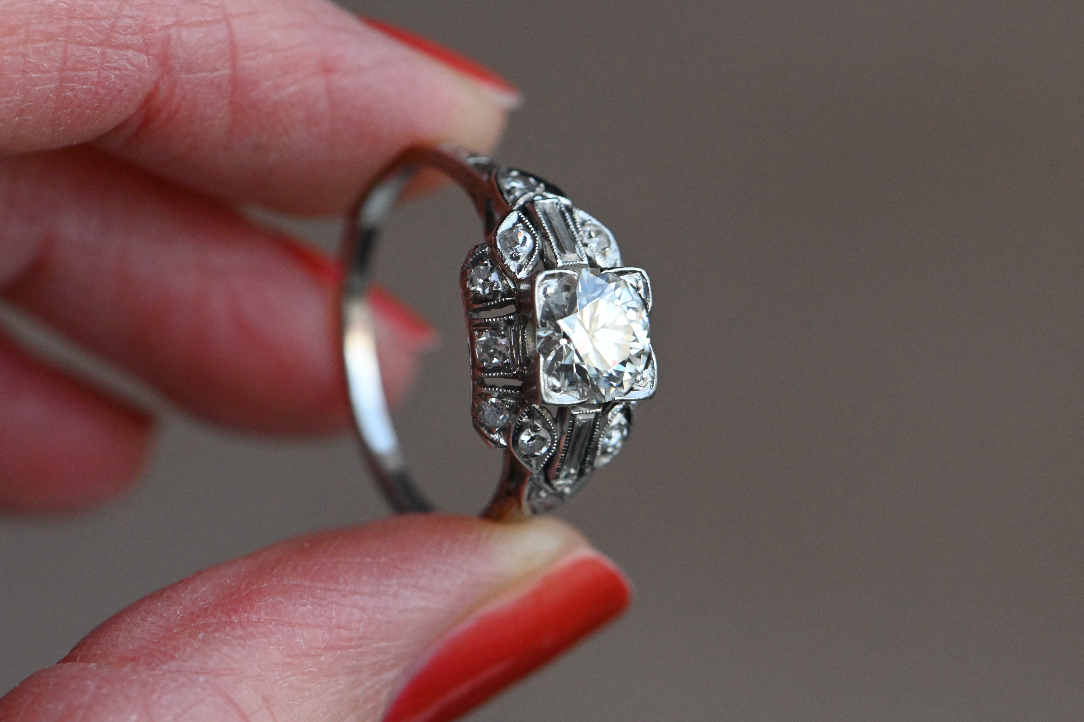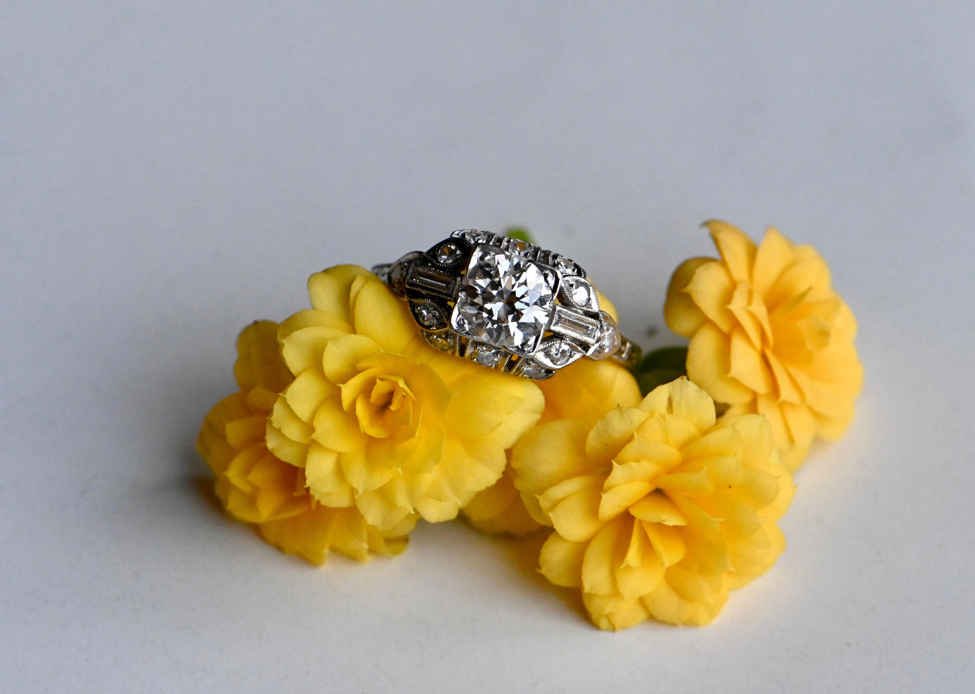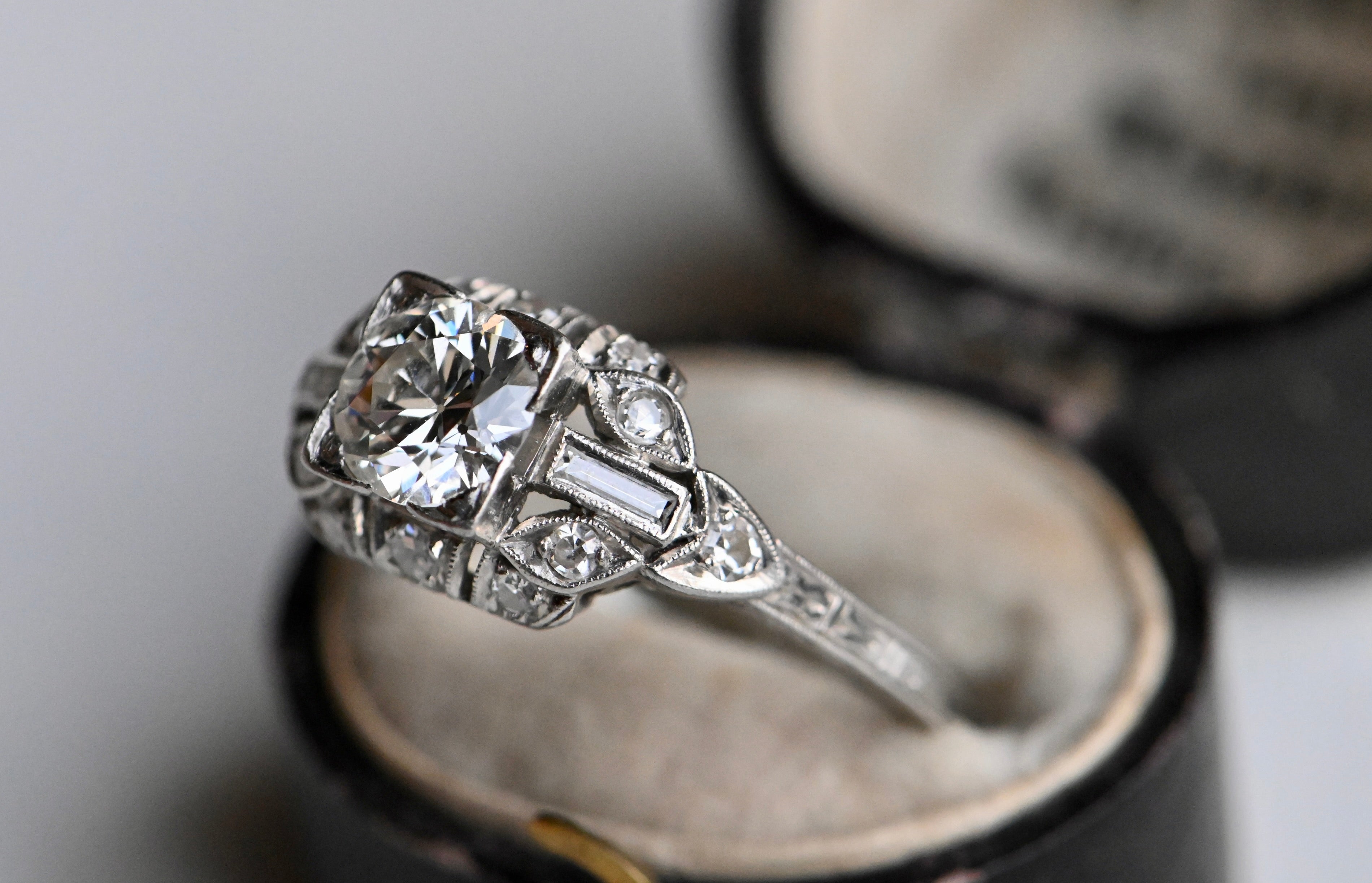 Antique 1920s Art Deco 1.00 carat SI1/I Old European Cut diamond engagement ring
