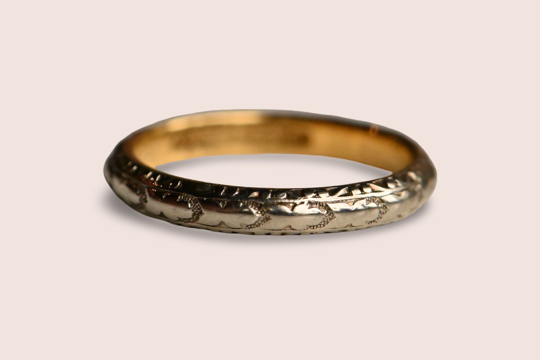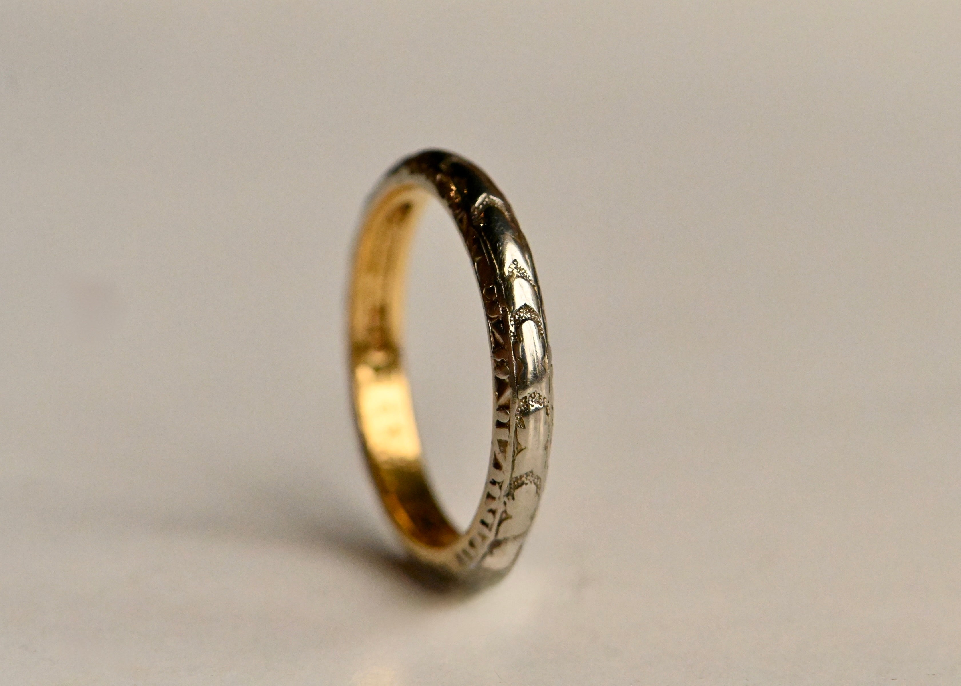 Antique "5-29-17" 1910s platinum and 22K wedding band