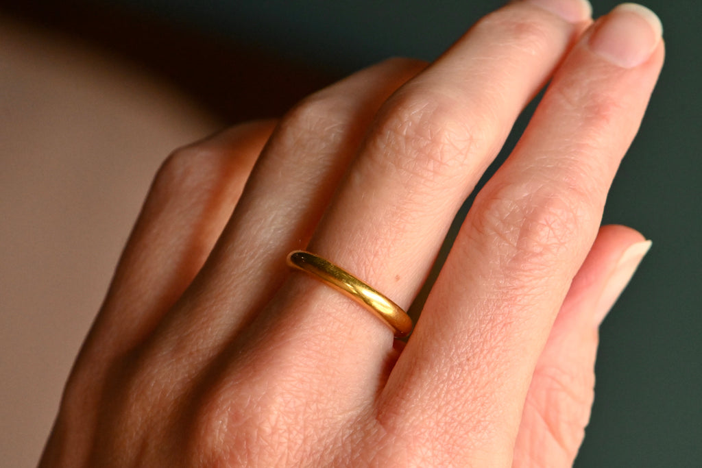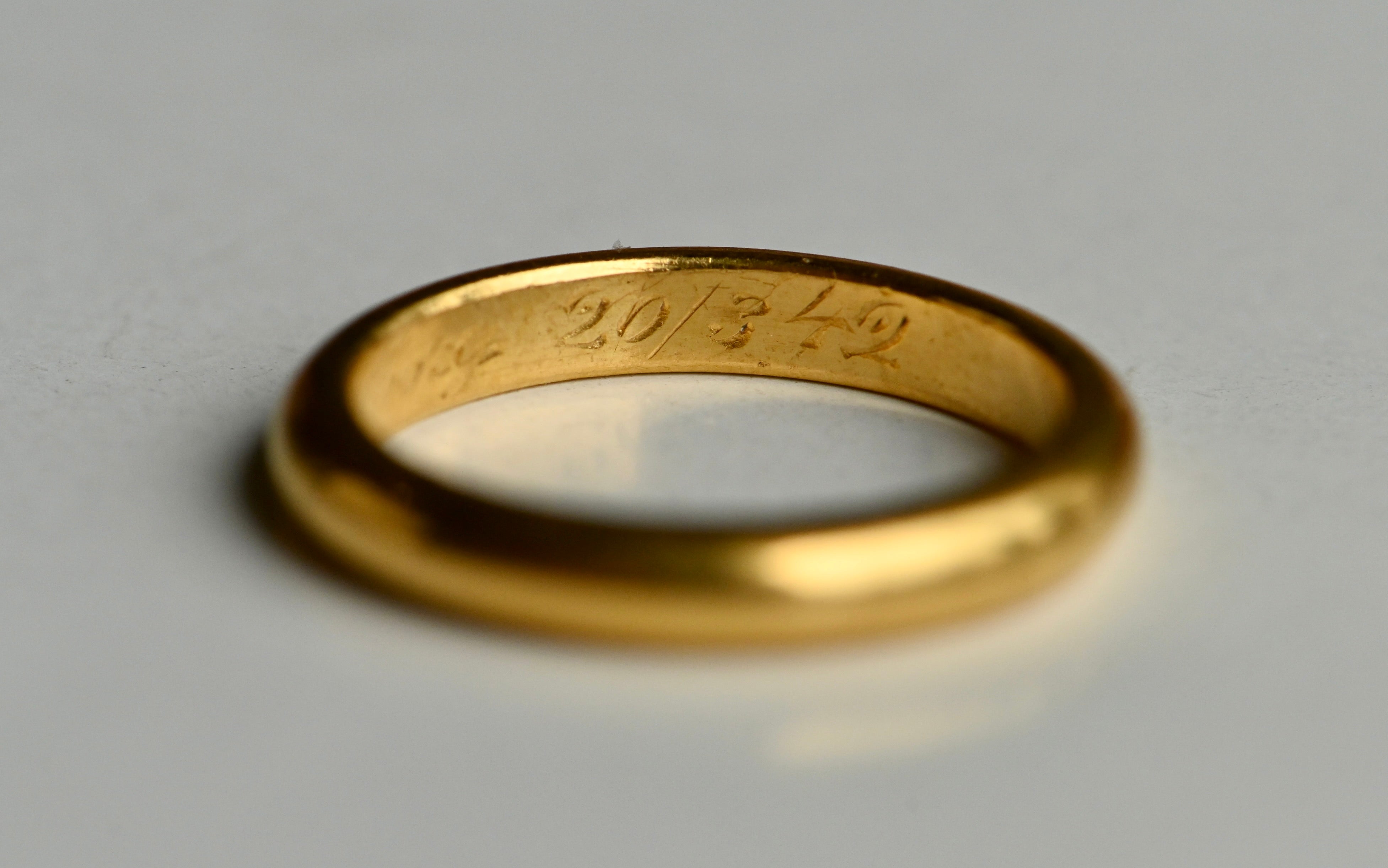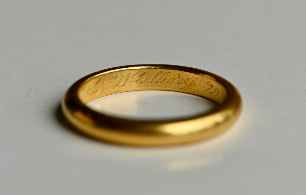 Vintage "3-20-1942" 23K yellow gold Swedish wedding band or stacking ring