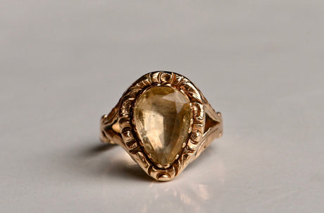 Antique 1810s 14K Georgian Regency Era pear-shaped citrine ring
