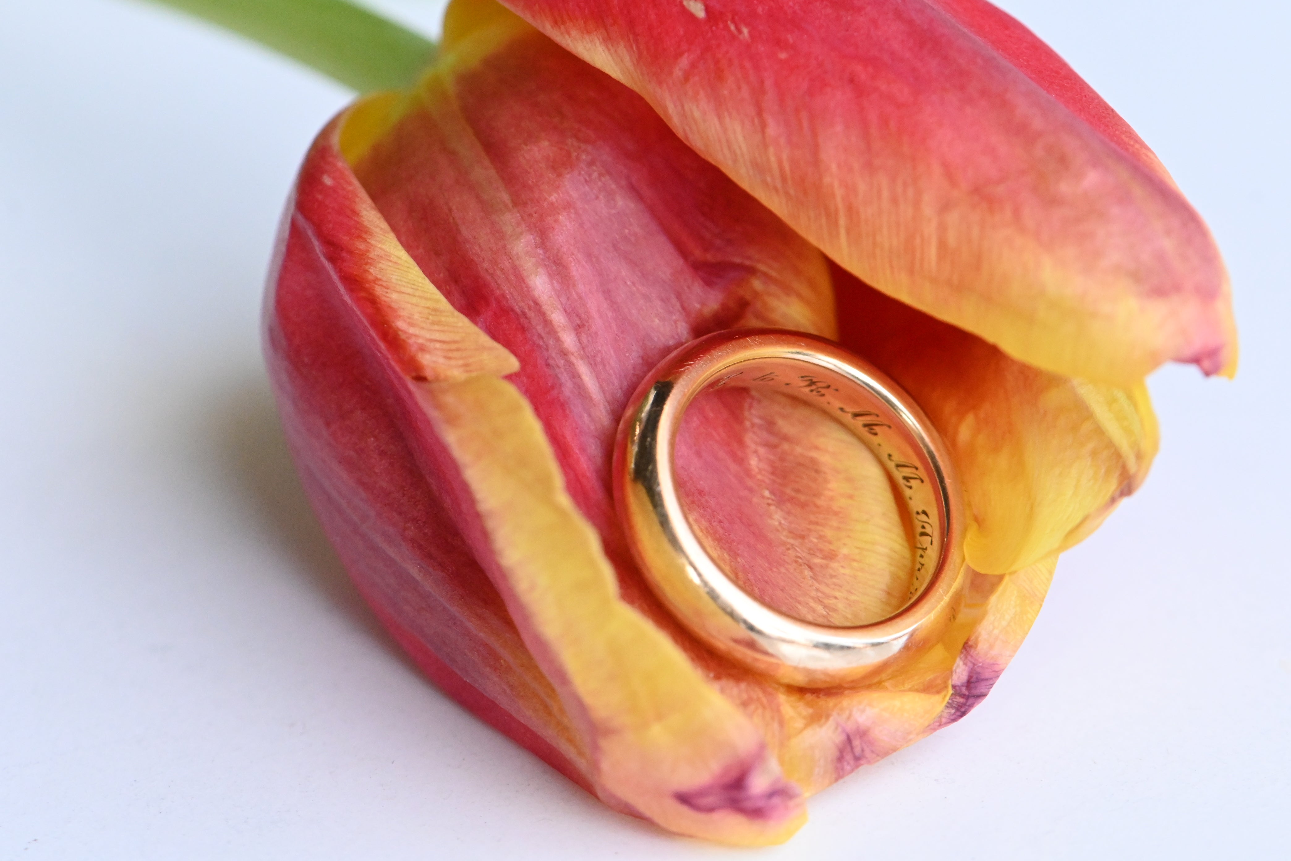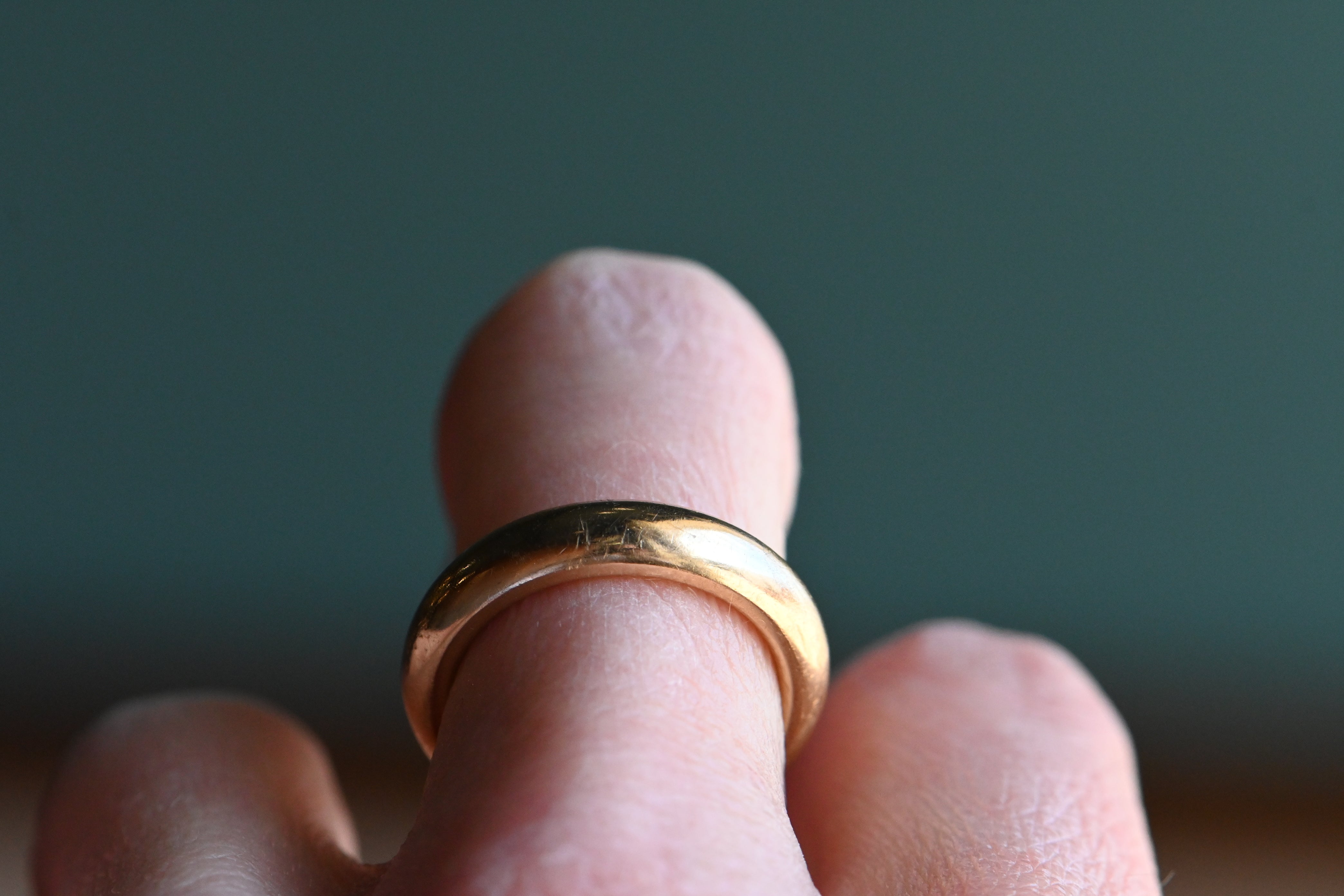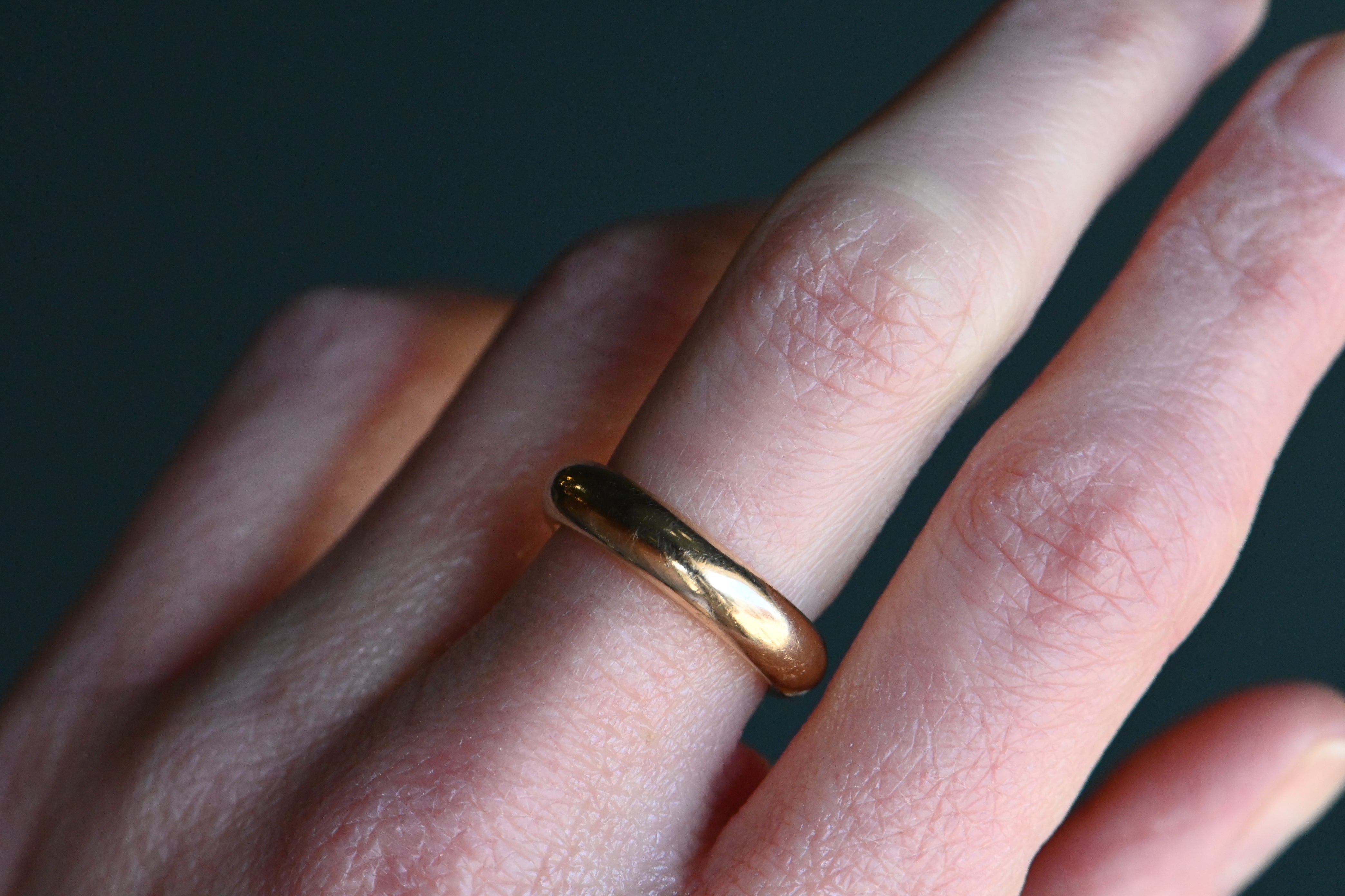 Antique "4-29-14" Edwardian 1910s SIZE 5 US 18K yellow gold donut wedding band